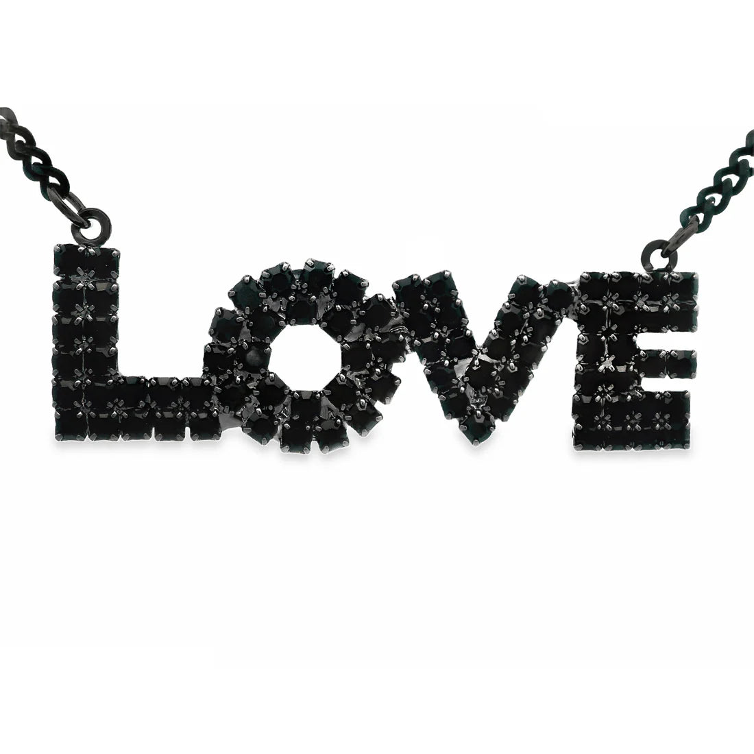- Complete your look with this uniquely charming LA LA LOVE Necklace in Smutt / Jet! Crafted in smutt-plated brass, this 17" beauty will wow with its high-quality crystals and 3.5" extender. Show your love with this pendant and just have fun with it!