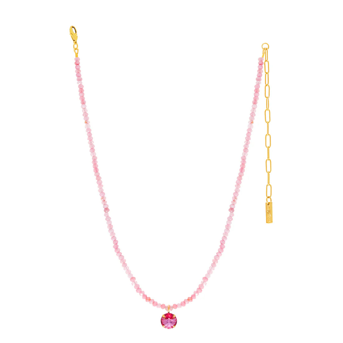 - Liven up your look with the Paige Necklace in Midnight Express! This sparkly stunner will have you turning heads, featuring beautiful beads, high quality crystals and an antique gold-plated brass base metal. Whether you're clinching a big deal or just looking to impress, this beauty's 14" chain and 4" extension will do the trick.