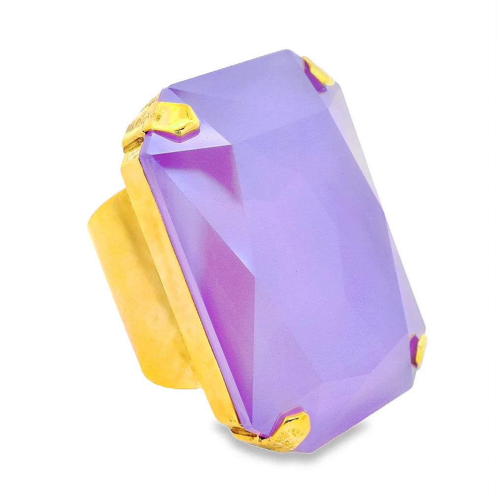 - The Soleil Ring in lilac ultra, a bold and beautiful antique gold plated ring that’s adjustable. Its unique and striking design exudes elegance and sophistication, making it perfect for those who appreciate statement-making jewelry.
