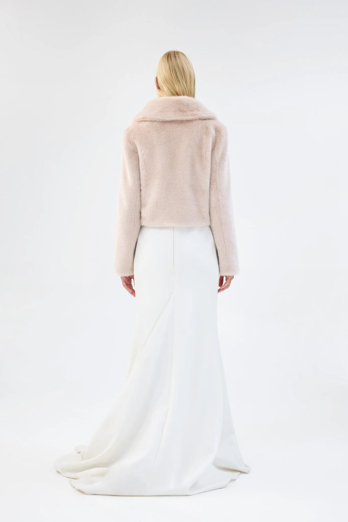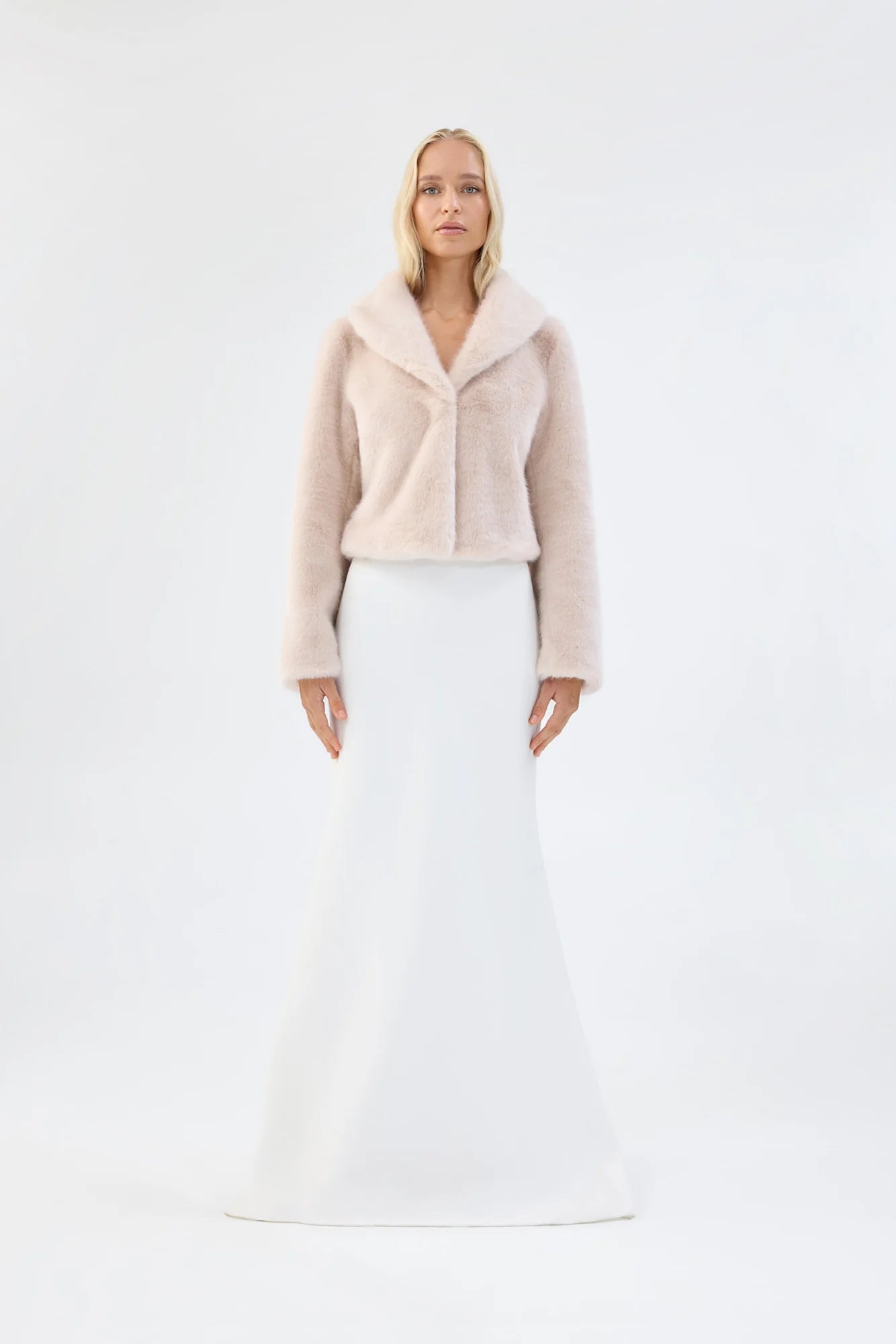 - The Maiden Jacket is a timeless, versatile piece designed to effortlessly elevate your bridal look and beyond. With its elegant cropped silhouette and soft neutral tone, it pairs beautifully with wedding gowns, formal attire, or your favorite everyday ensembles. Featuring an oversized lapel collar, discreet hook-and-eye closures, and a refined finish, this jacket offers a sophisticated layer that transitions seamlessly from ceremony to celebration—and every occasion after.