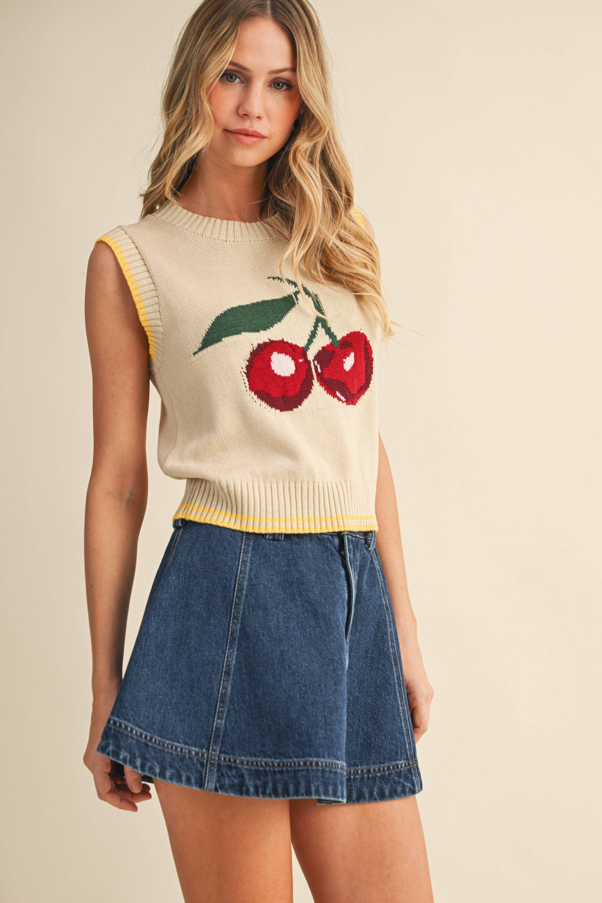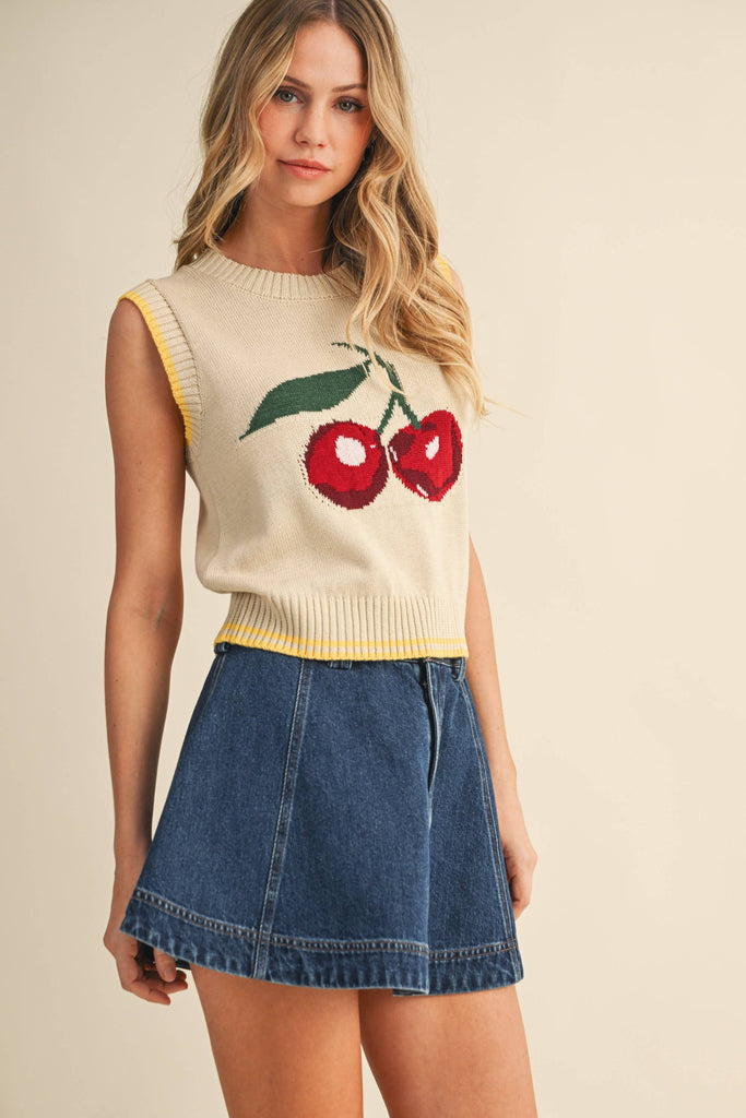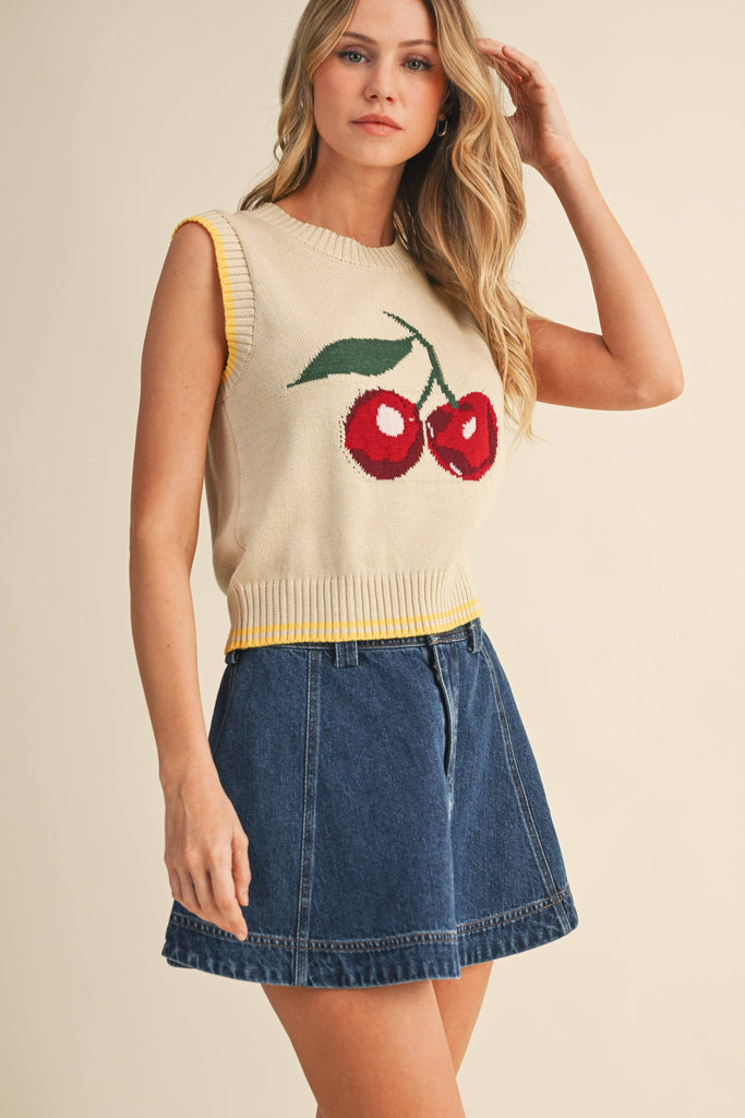 Cherry Sweater Knit Top