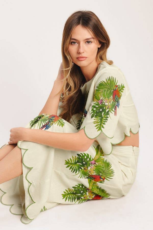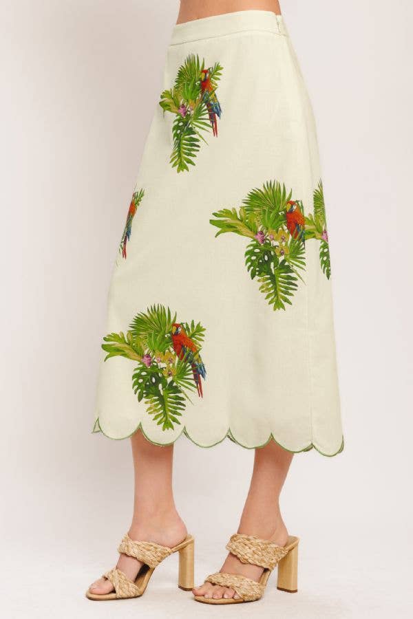 Parrot Scallop Midi Skirt