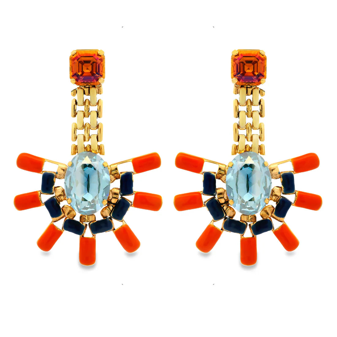 - Add a little sparkle to any outfit with these Gisele Earrings! These stunning accessories feature antique gold plating, a brass base metal, hand painted enamel and high-quality crystals. They measure 2.25"! So why not level up your look and show off your style with these fabulous earrings?