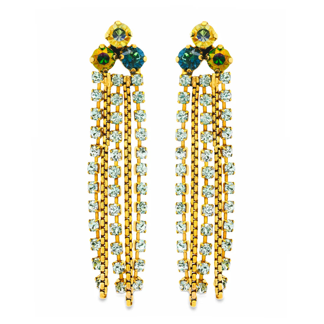 - Introducing Leif Earrings - the perfect mix of elegance and edginess! These antique gold plated earrings feature high quality crystals and hypoallergenic surgical steel posts for a comfortable wear. Made in Canada and measuring 2.5" in length, these brass base metal earrings are just what you need to elevate your look.