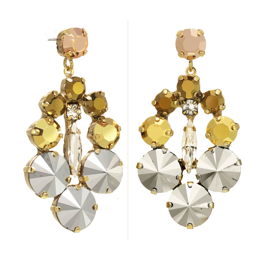 - Add a touch of sparkle with the Leonie Earrings! These beauties feature high-quality crystal set on an antique gold-plated brass base, combining vintage charm with modern shine. Hypoallergenic steel posts keep your ears happy, so you can play, dance, and dazzle all day long. Perfect for adding a playful pop to any outfit!