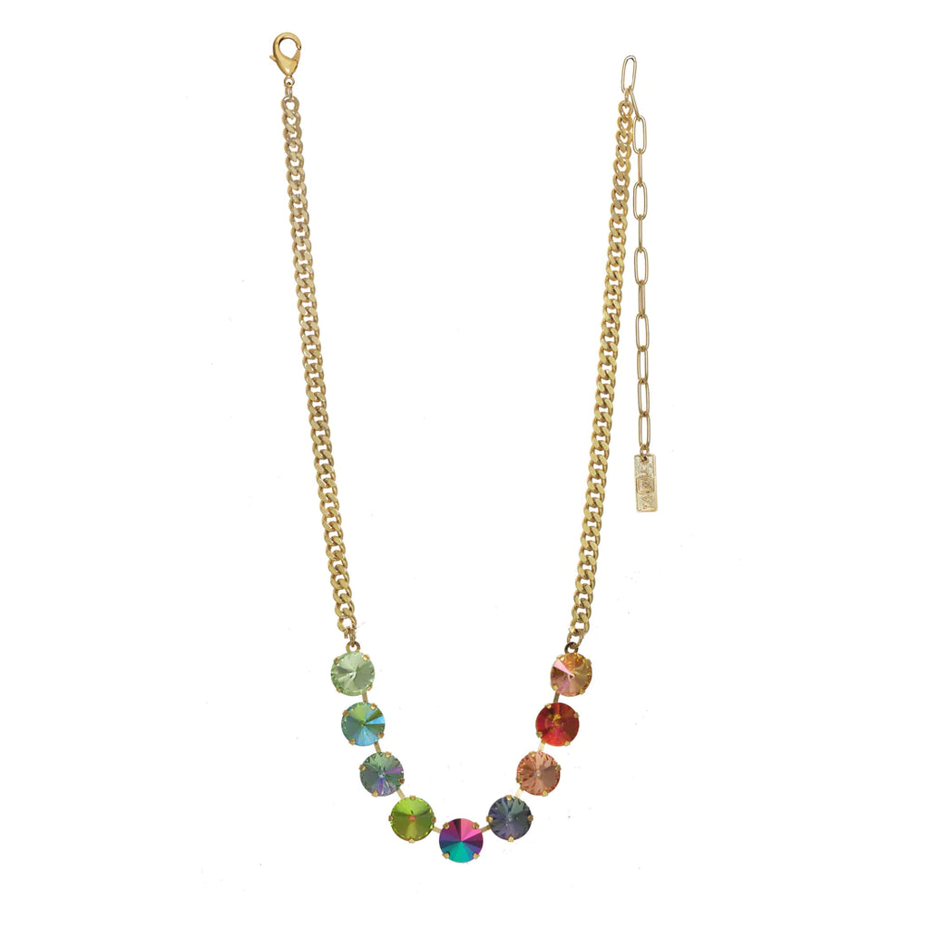 - Make a sparkly statement in style with the Mini Sofia Necklace in Watermelon! This distinctive design, crafted from a high-quality antique gold plated, brass base metal and adorned with gleaming crystals, will be sure to get your neckline noticed. Plus, with a 14" chain and a 3" extension, it's totally adjustable for your perfect fit!
