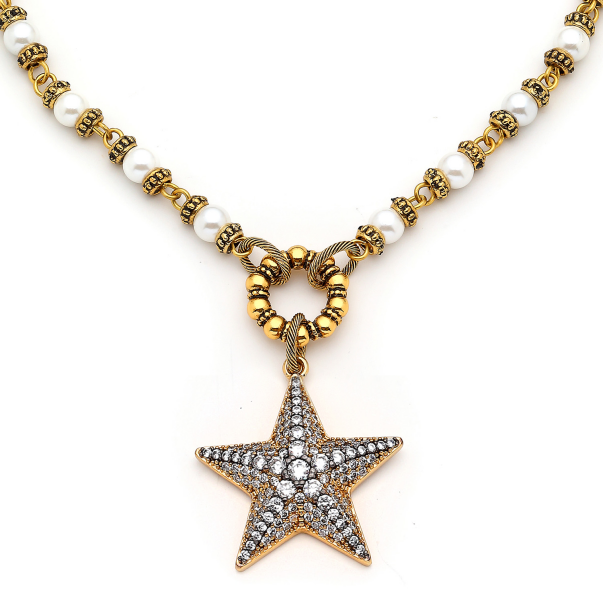 Sherrif Pearl Gold Plated Star Zircon Charm Necklace