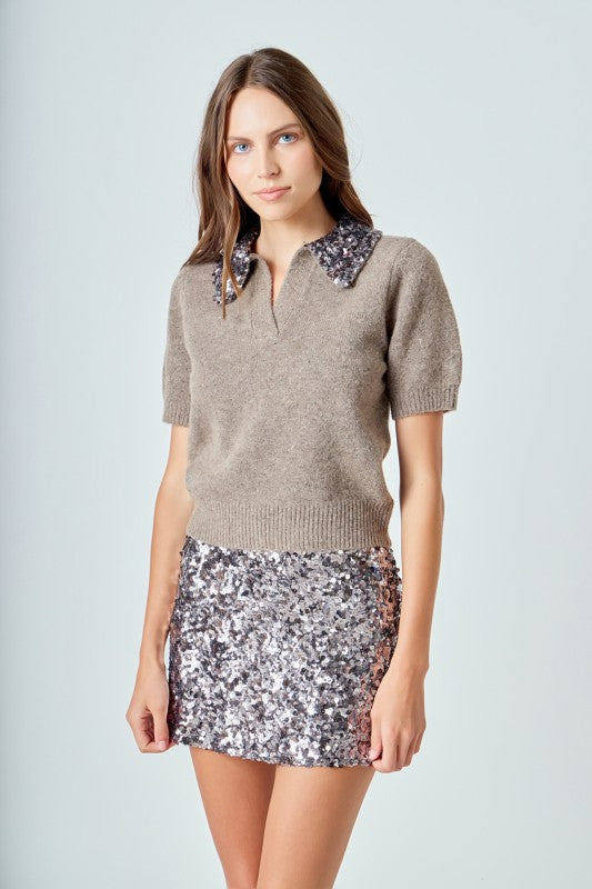 Sequin Accent Knit Sweater Top