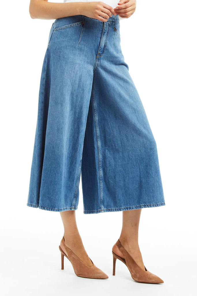 Denim Culotte with Back Waist Buckle