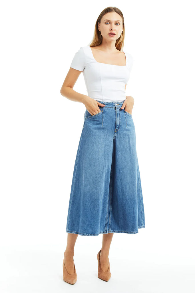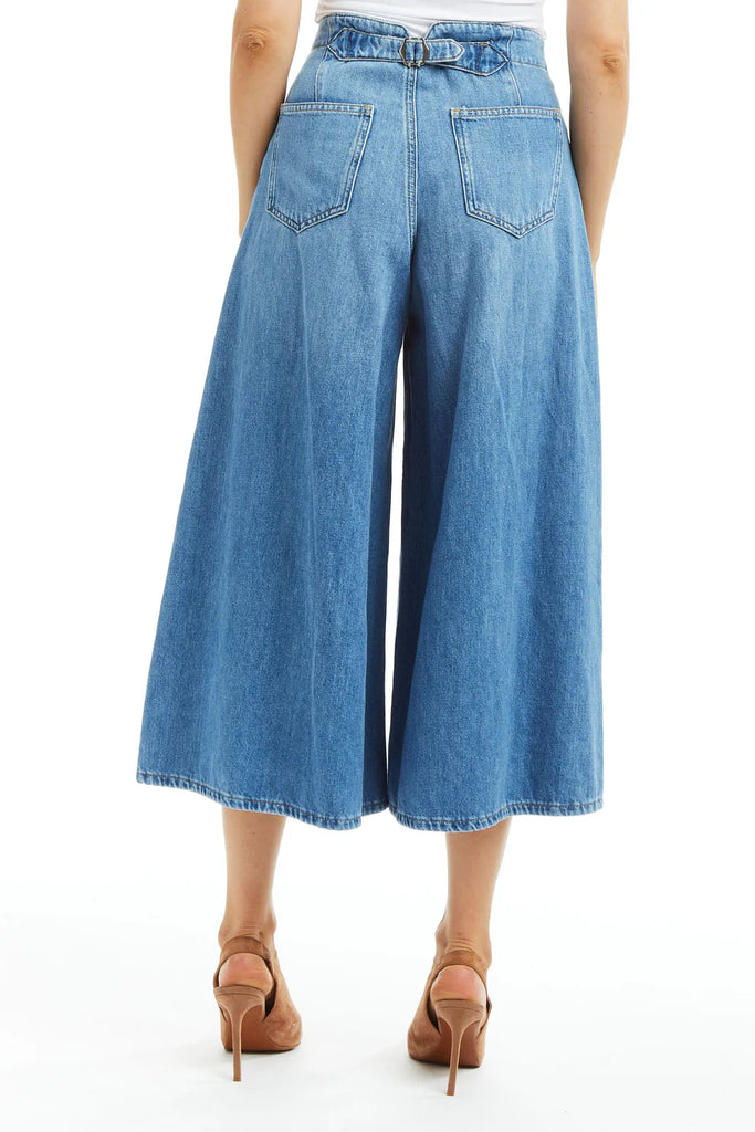 Discover our Denim Culotte with a distinctive Back Waist Buckle, blending chic style with everyday comfort. Perfect for those who appreciate both fashion and functionality, this culotte adds a trendy flair to your wardrobe while ensuring a flattering fit with its adjustable buckle detail.