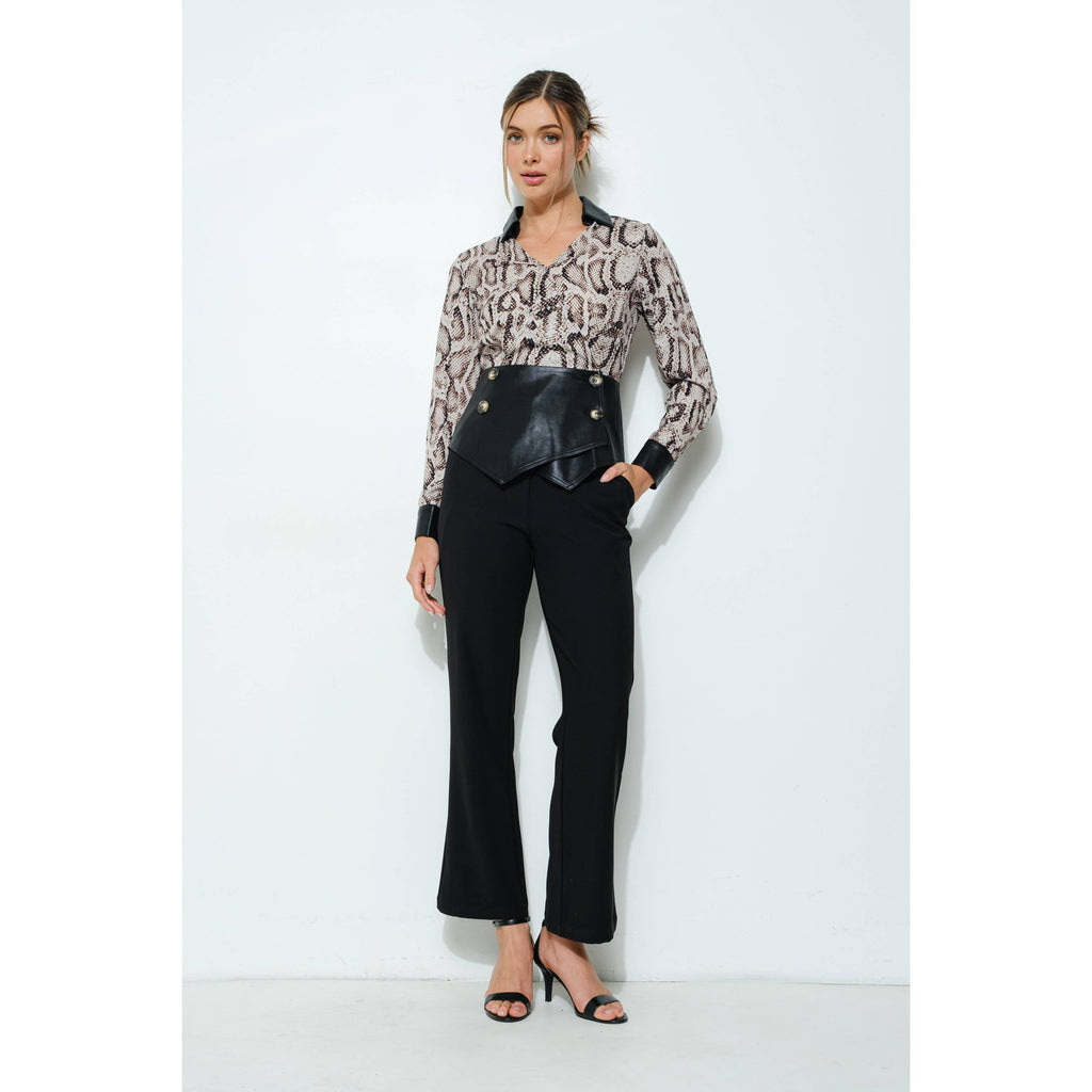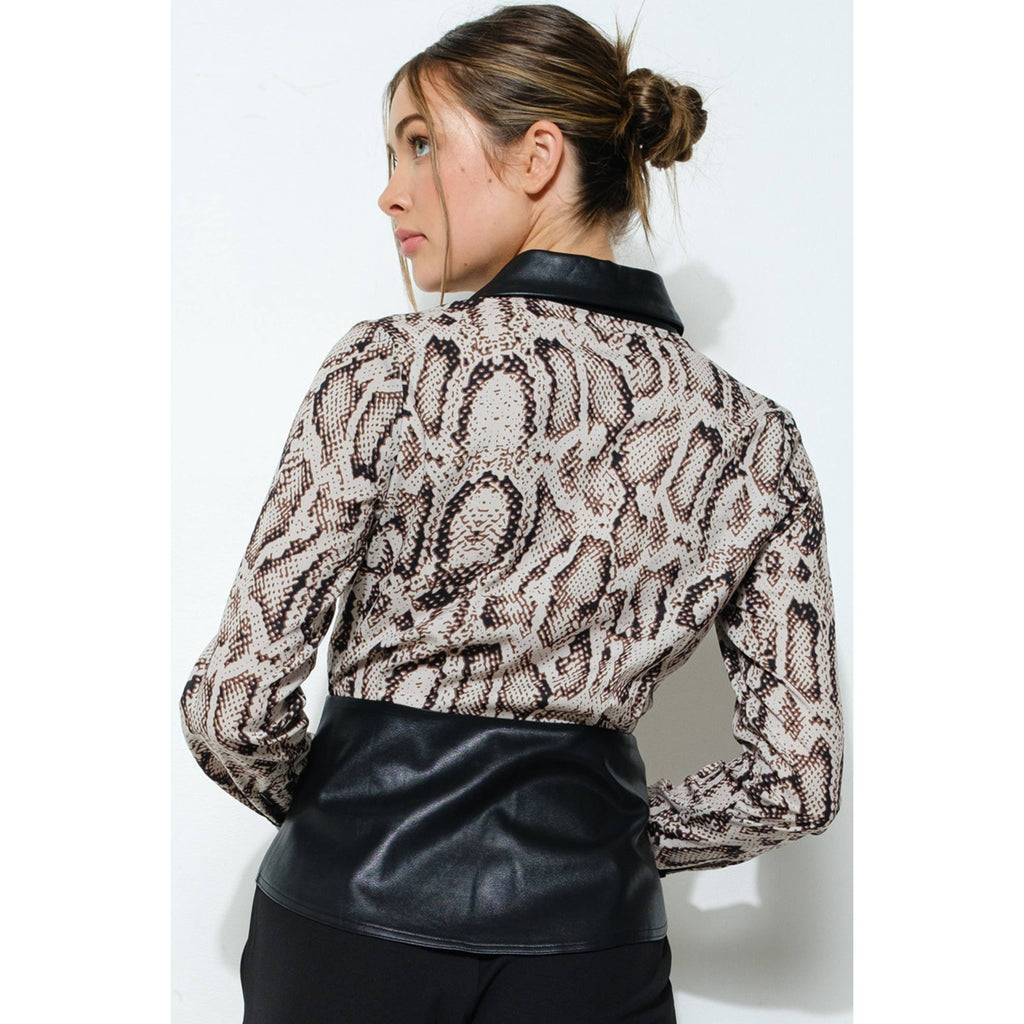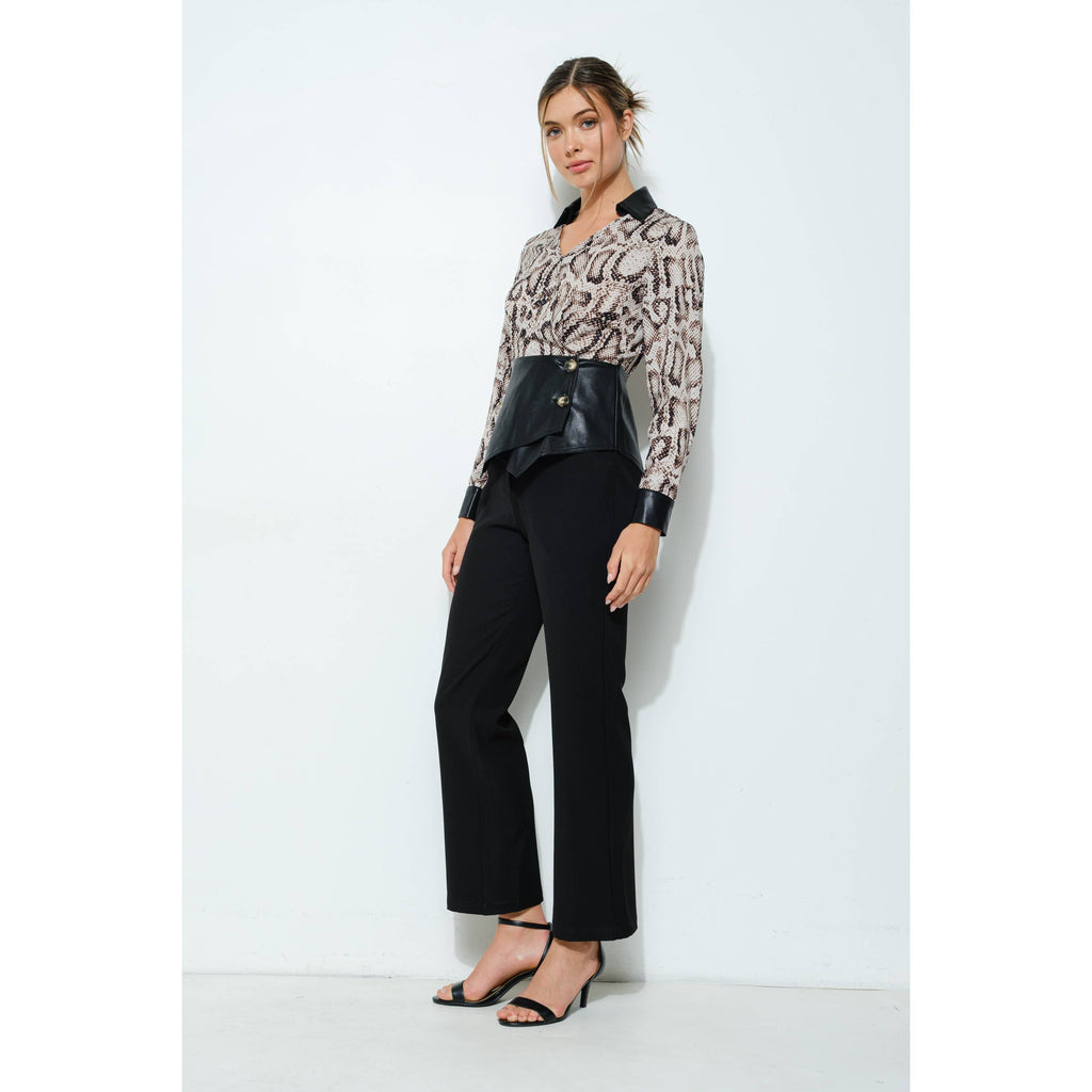 Animal Print Faux Leather Detail Peplum Top
