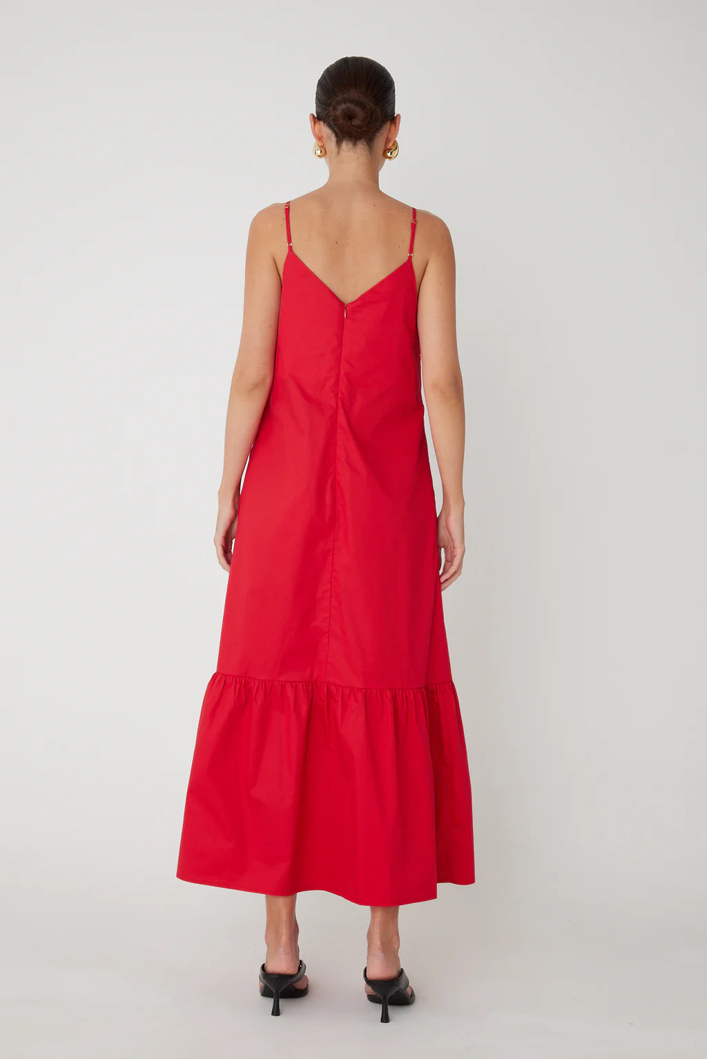 - Elevate your resort wardrobe with this striking cherry red dress, a versatile piece that transitions seamlessly from poolside elegance to evening sophistication. Wear it as a breezy cover-up by day, then pair with heels for an effortlessly chic look after sunset. Timeless and refined, this dress embodies understated luxury for the modern traveler.