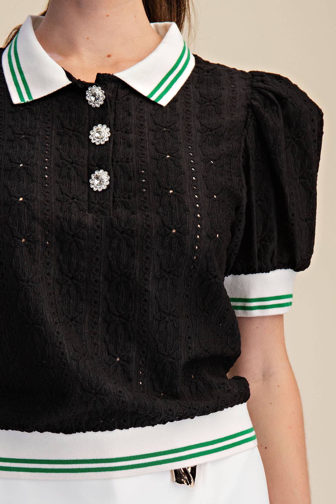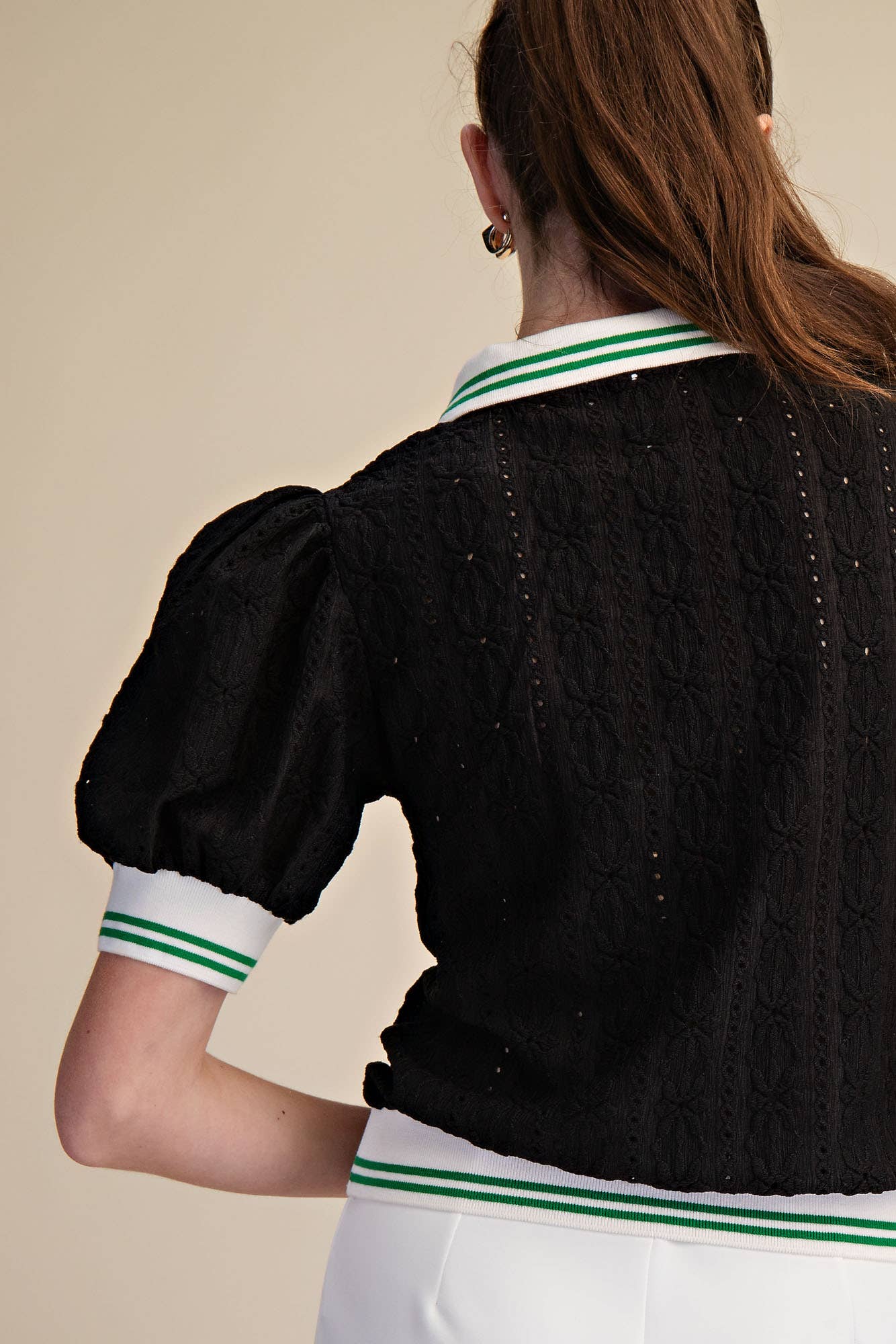Puff-Sleeve Lace Knit Romantic Top
